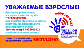 Детский телефон доверия 8-800-2000-122 короткий 124 номер, создан для оказания психологической помощи детям, подросткам и их родителям в трудных жизненных ситуациях. С 2010 года он принял уже более 9 млн звонков. Звонок бесплатный и анонимный.
