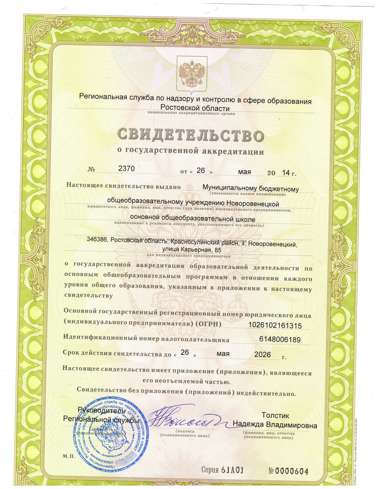 | Адрес местонахождения образовательной организации | 346386, Ростовская область, Красносулинский район, х.Новоровенецкий, ул. Карьерная. д.85 |